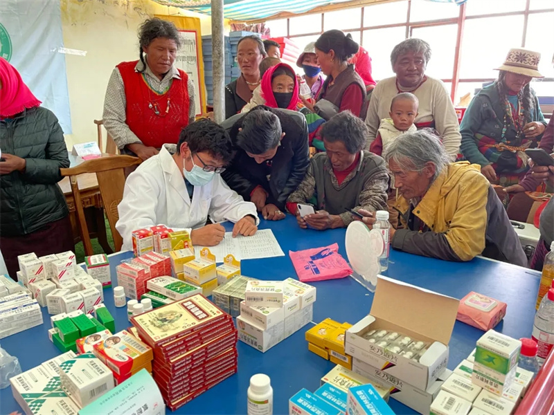 當天,在措勤縣達雄鄉還舉行了一場義診,阜康天使基金會通過當地衛生院的醫生,將常見病藥品,發至需要的群眾手中。